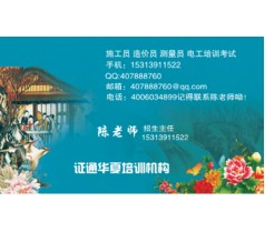 陈老师招生简章:现面向全国开设:培训项目:1建筑十大员:施工员、安全员、监理员、质检员、测量员、预算员、物业管理员等2场内机动车类:挖掘机、塔吊、装载机