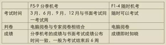 F5-9分季机考和 F1-4随时机考有以下主要差别: