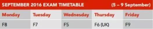 2016年 9月考试,F5至 F9所有科目的分季机考的费用均为提前报名的价格93英镑。书面考试将遵循一般的提前报名、常规报名和后期报名的价格标准,您可以在 ACCA网站上查看考试费用。