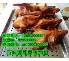百味源蒸香鸭,结合中草秘方配制技术,运用百味源制作工艺,古法腌制,加上秘制汤与料油的搭配,百味源研制油汤蒸煮技术,精制而成,真正绿色产品,打造健康饮食新理念,不运用任何香精,添加剂等有害人体成分,独创口味配方技术,实为秘方配制新产品,使蒸香鸭达到一种色,香,味俱全的真正美食,让很多创业人员实实在在的学到一门技术。