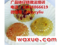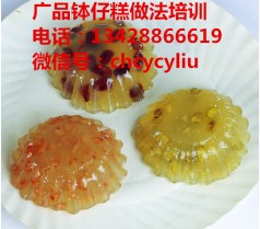 3、 由专业的食品加工师傅教学员制作广东水晶钵仔糕,口味包括:水蜜桃味、香蕉味、红豆口味、绿豆口味、芝麻口味、核桃口味、巧克力味、红枣味、葡萄干味等。