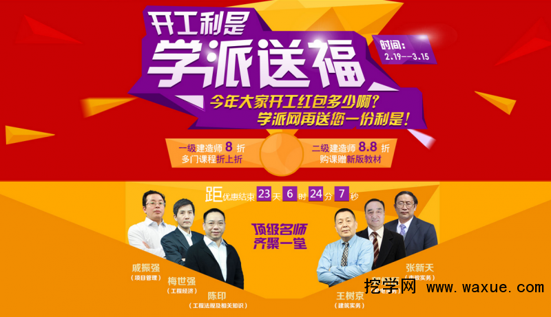 学派网(大家网校)给大家送利是红包!一建8折,二建8.8折限时赠送教材!