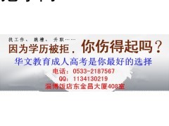 2015年淄博成人高考报名开始了…… 我校在淄博建立多个成人高考函授站(学员可就近上课),教育厅备案!有着丰富的办学经验,院校众多,专业齐全。是淄博市学生报考成人高考的首选!