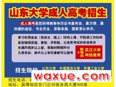 一、成人高考院校推荐:山东大学、中国海洋大学、齐鲁工业大学、滨州医学院,武汉大学(网络教育)。