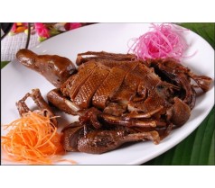 “酱板鸭”是湖南永州特产(选材为本地特有的水鸭)一绝名菜,是经三十多种名贵食材浸泡,10余种香料、经过风干、烤制等15道工序精致而成,成品色泽深红,皮肉酥香,酱香浓郁,滋味悠长,具有活血、顺气、健脾、养胃、美容之功效,是近期风靡大江南北的一种风味美食,是一道佐酒佳肴、送礼佳品。产品香、辣、甘、麻、咸、酥、绵适中,具有醇香可口,色香俱全,低脂不腻,回味无穷,食用方便的特点。