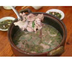 含蛋白质、脂肪、维生素外,还含有大量磷酸钙、骨胶原、骨黏蛋白等。汤粉面做法中的营养;骨汤味甘、咸,入脾、胃经,有补脾气、润肠胃、生津液、丰机体、泽皮肤、补中益气、养血健骨的功效。儿童经常喝紫金八刀汤粉面骨头汤,能及时补充人体所必需的骨胶原等物质,增强骨髓造血功能,有助于骨骼的生长发育,成人喝可延缓衰老。