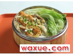笼仔饭是广东省汉族传统名小吃之一,荷叶笼仔饭的味道和煲仔饭很相似,香喷喷的,味道浓厚,有香菇鸡、腊味、卤味等品种供人们选择。煲仔饭有厚厚的锅巴,用勺子一挖一挖地感觉蛮有趣,而荷叶笼仔饭就没有这么麻烦,浓香中飘着荷叶的淡淡清香。创作出荷叶鸡的灵感来自广东的传统食品。热线电话:134-288-666-19