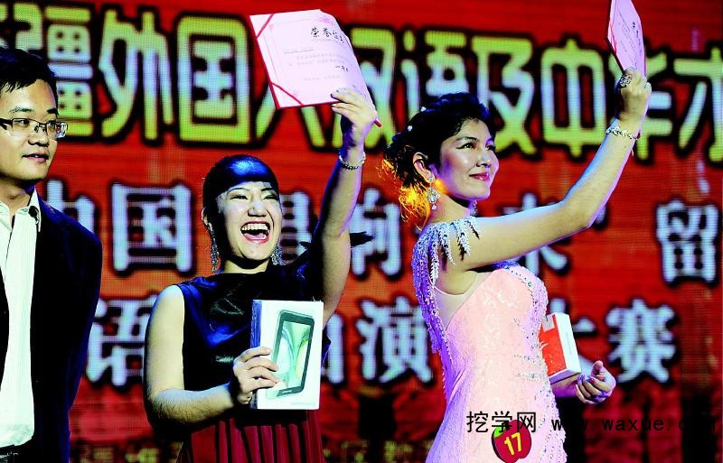 来自巴音郭楞职业技术学院、新疆财经大学、石河子大学、新疆农业大学等6所高校的24名留学生选手参加了中文歌曲演唱比赛。经过3小时角逐,最终新疆师范大学哈萨克斯坦留学生叶丽娜尔·加迪拉(图左)和新疆财经大学哈萨克斯坦留学生阿依娜乐(图右)分别以《我是不是你最疼爱的人》、《烛光里的妈妈》荣获一等奖。